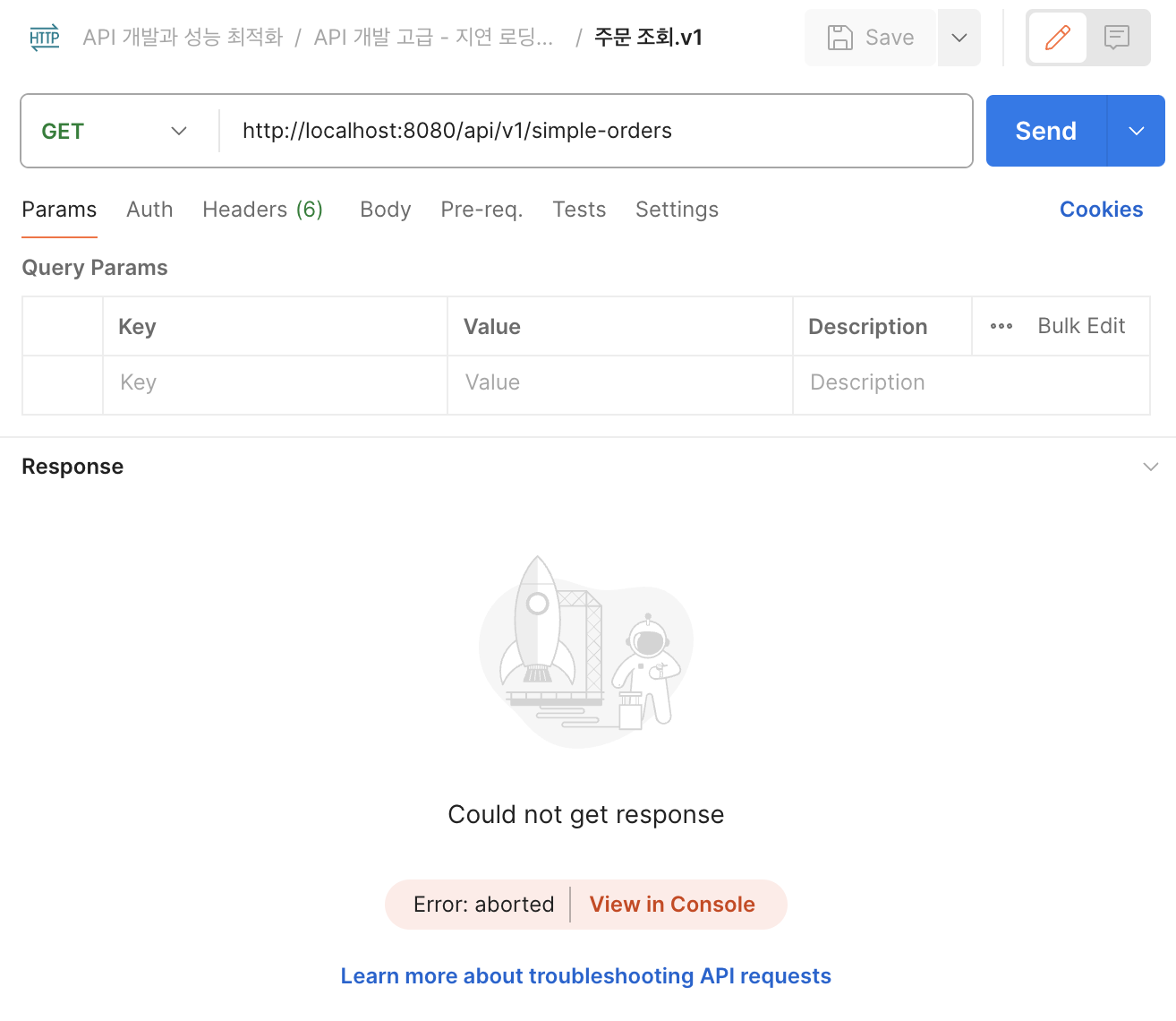 가장 단순한 형태인 주문 정보를 조회하는 API를 만들어 보자. 다음과 작성하자.