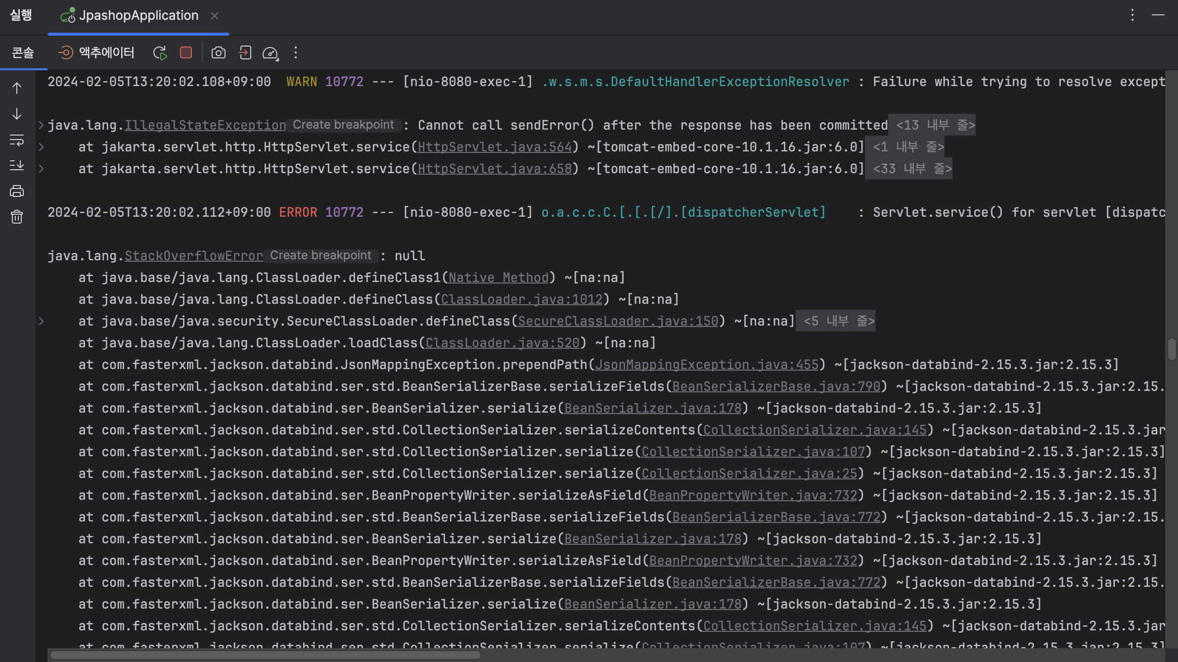 객체를 Json으로 만들어주는 Jackson 라이브러리는 Order 엔티티에서 Member 엔티티로, Member 엔티티에서 Order 엔티티로.. 서로를 무한 참조하게 된다. 즉, 양방향 관계에서 문제가 발생한 것이다. 이에 대한 해결책으로, 양방향 연관관계가 있으면 둘 중 하나의 엔티티에 @JsonIgnore를 작성하는 것이다.