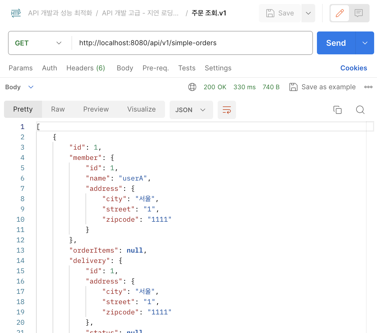 API 개발 고급 에서는 주문 + 배송정보 + 회원을 조회하는 API를 만들 것이다.