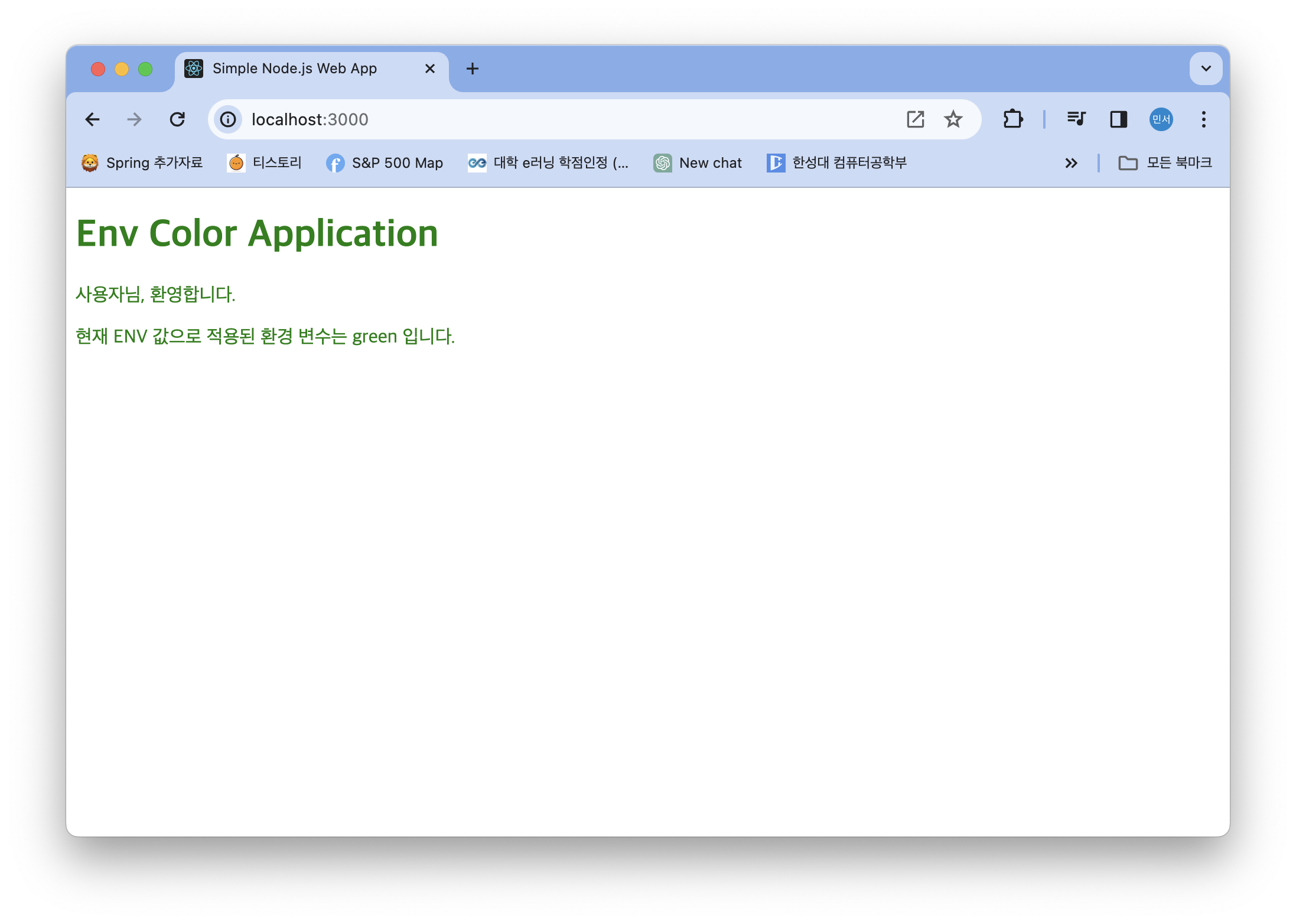 node.js를 기반으로 만들어진 envcolorapp을 통한 실습