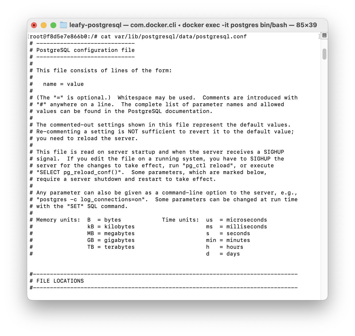 cat /var/lib/postgresql/data/postgresql.conf
