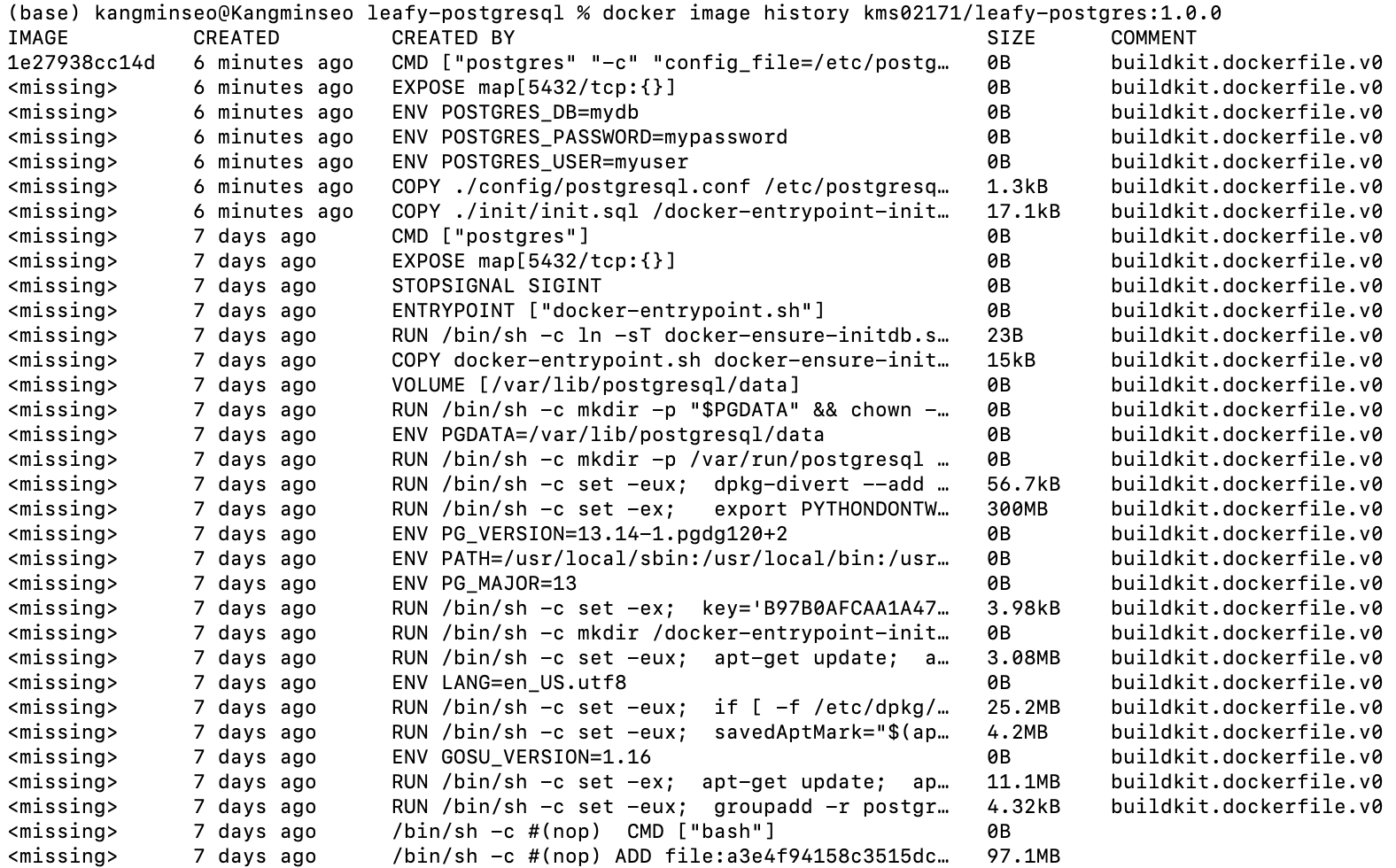 docker image history kms02171/leafy-postgres:1.0.0
