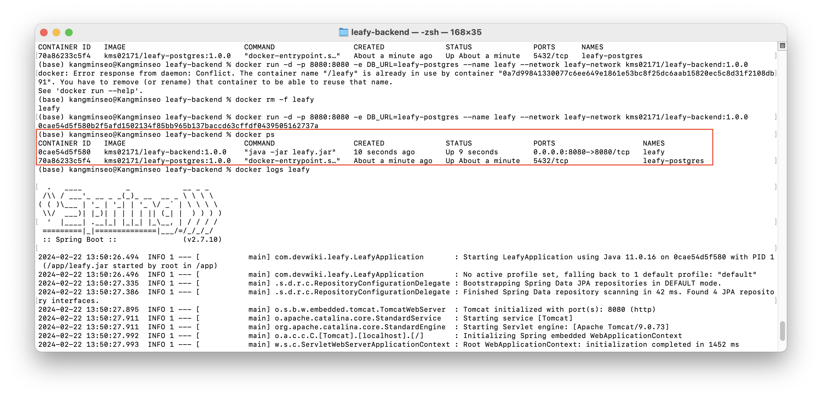 docker run -d -p 8080:8080 -e DB_URL=leafy-postgres --name leafy --network leafy-network kms02171/leafy-backend:1.0.0