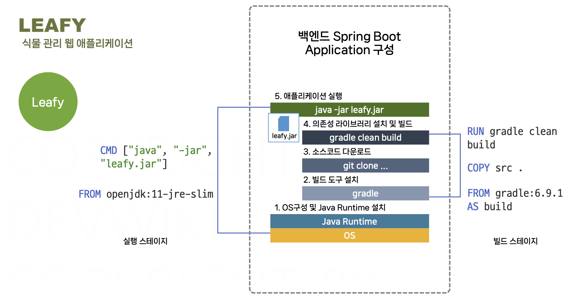 Dockerfile을 사용해 leafy-backend 이미지를 빌드한다.