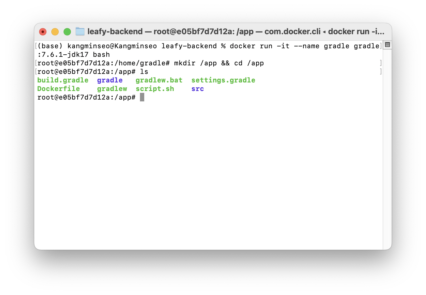 (터미널2) gradle 컨테이너의 /app 경로로 .(현재) 경로를 복사한다.