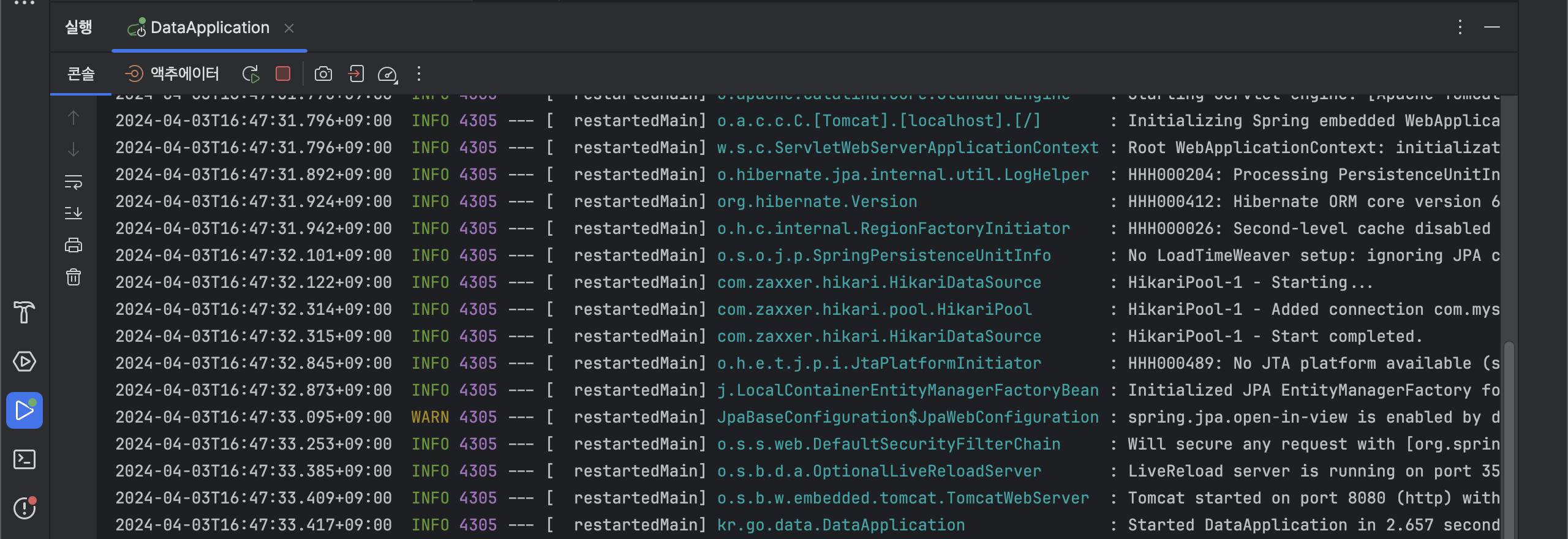 그러면 security 관련 로그가 뜨지 않는다.