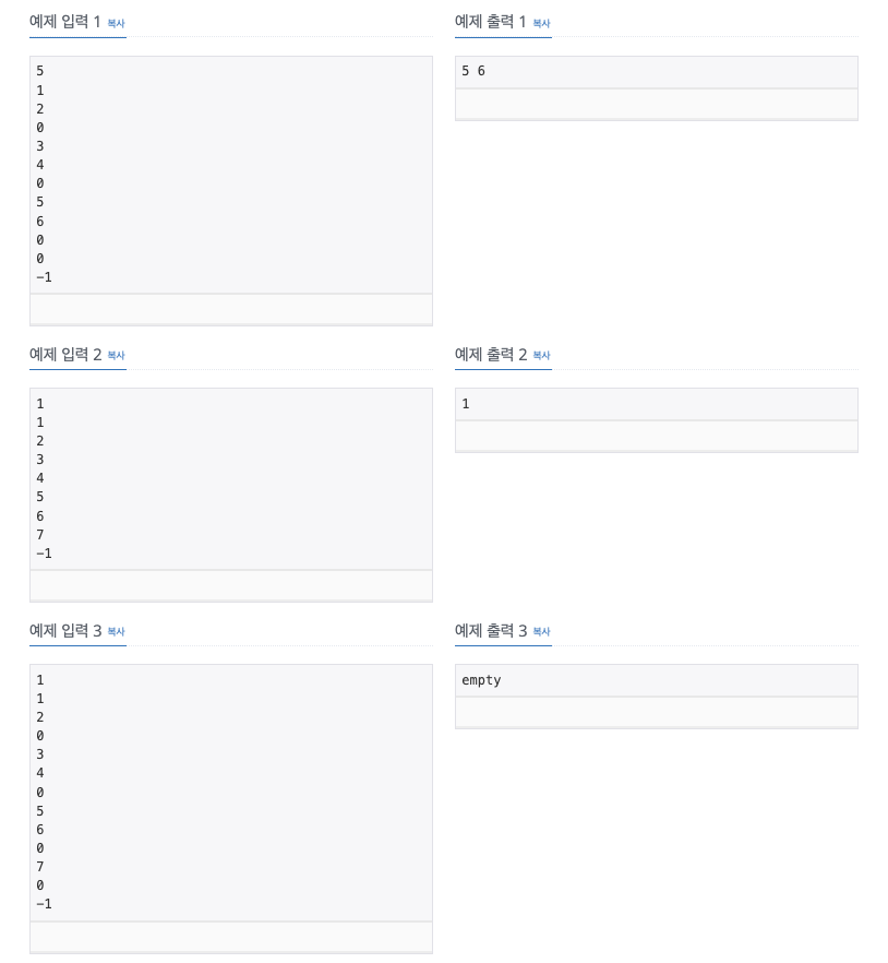 입력 받은 수가 0이라면 큐에서 값 하나를 뺀다.