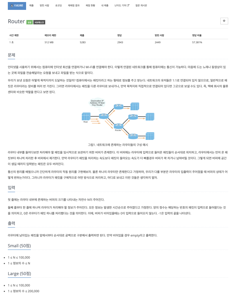 패킷이 먼저 들어온 것이 먼저 처리되므로, FIFO(First In First Out)의 자료구조인 큐를 사용하면 된다.