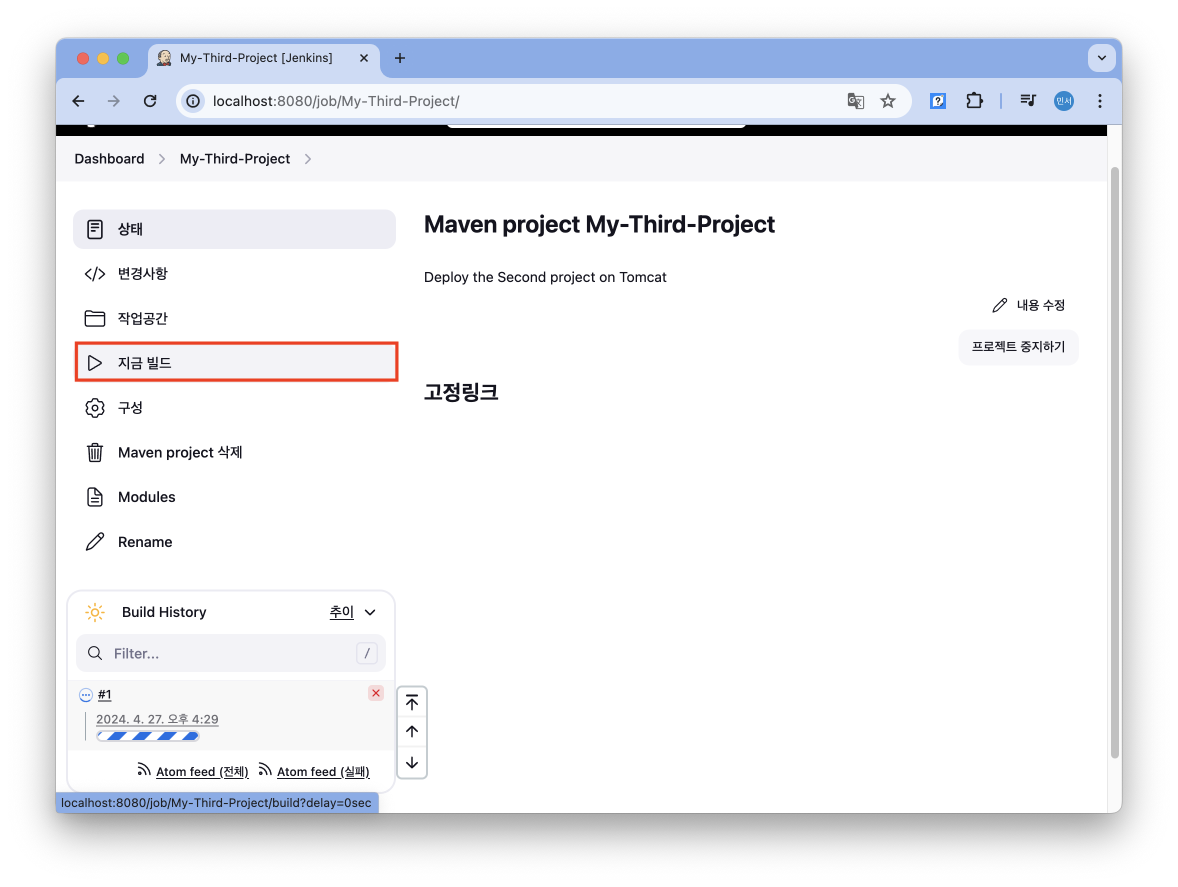 | Jenkins에서 Maven 프로젝트 생성 (0) | 2024.04.26 |