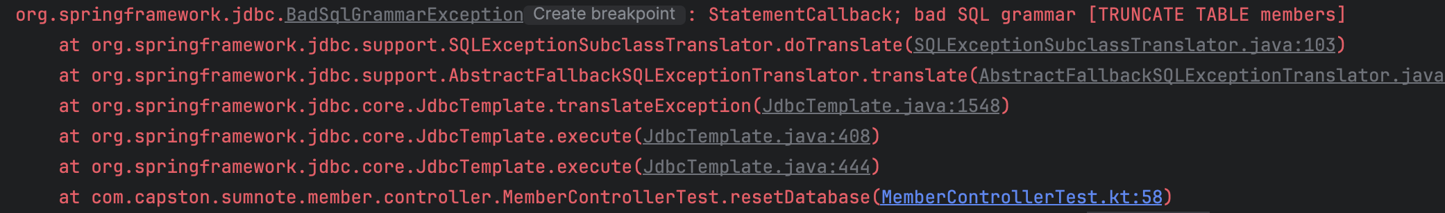 jdbcTemplate.execute("SET FOREIGN_KEY_CHECKS = 0") // FK Constraint 활성화
