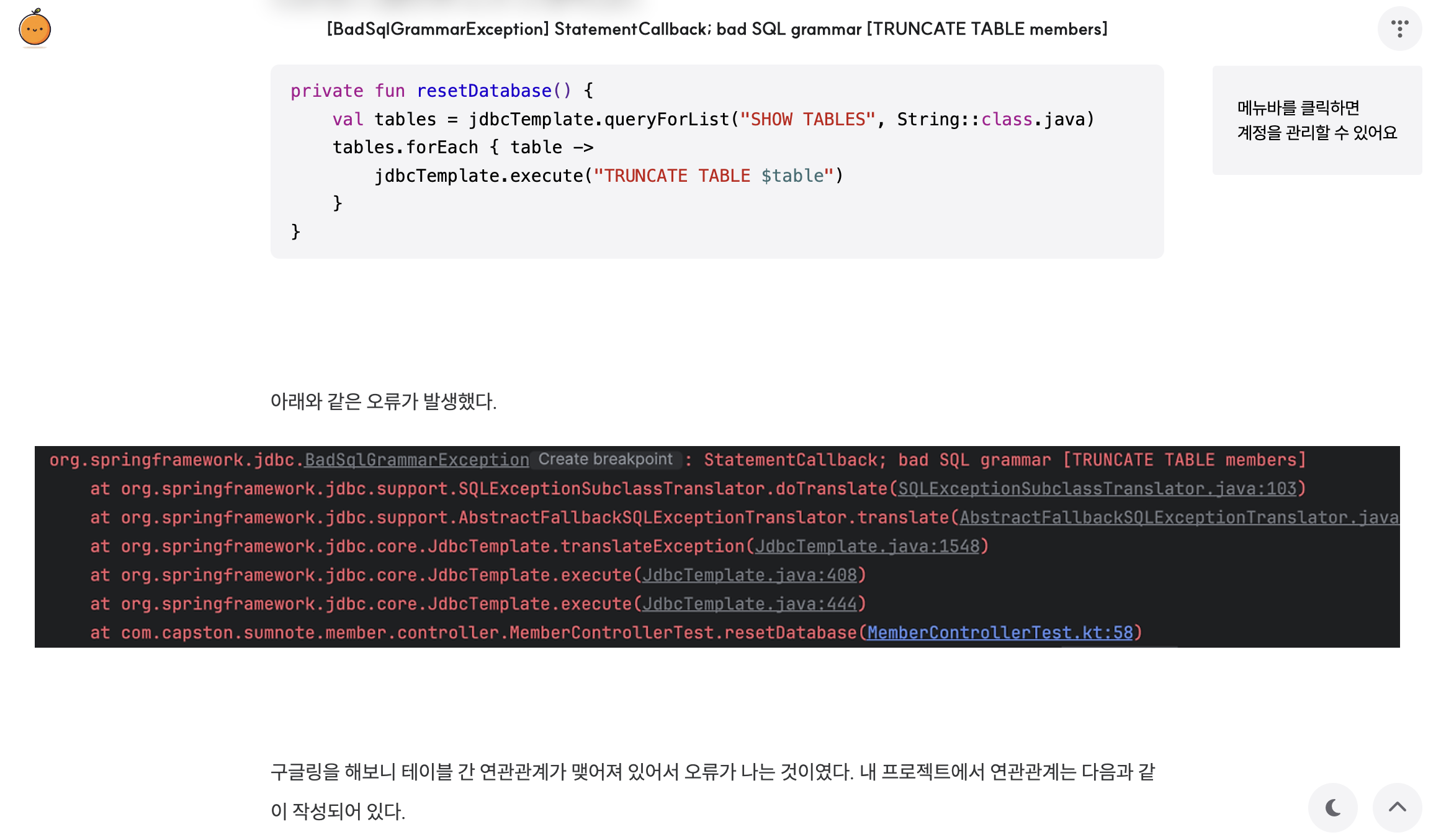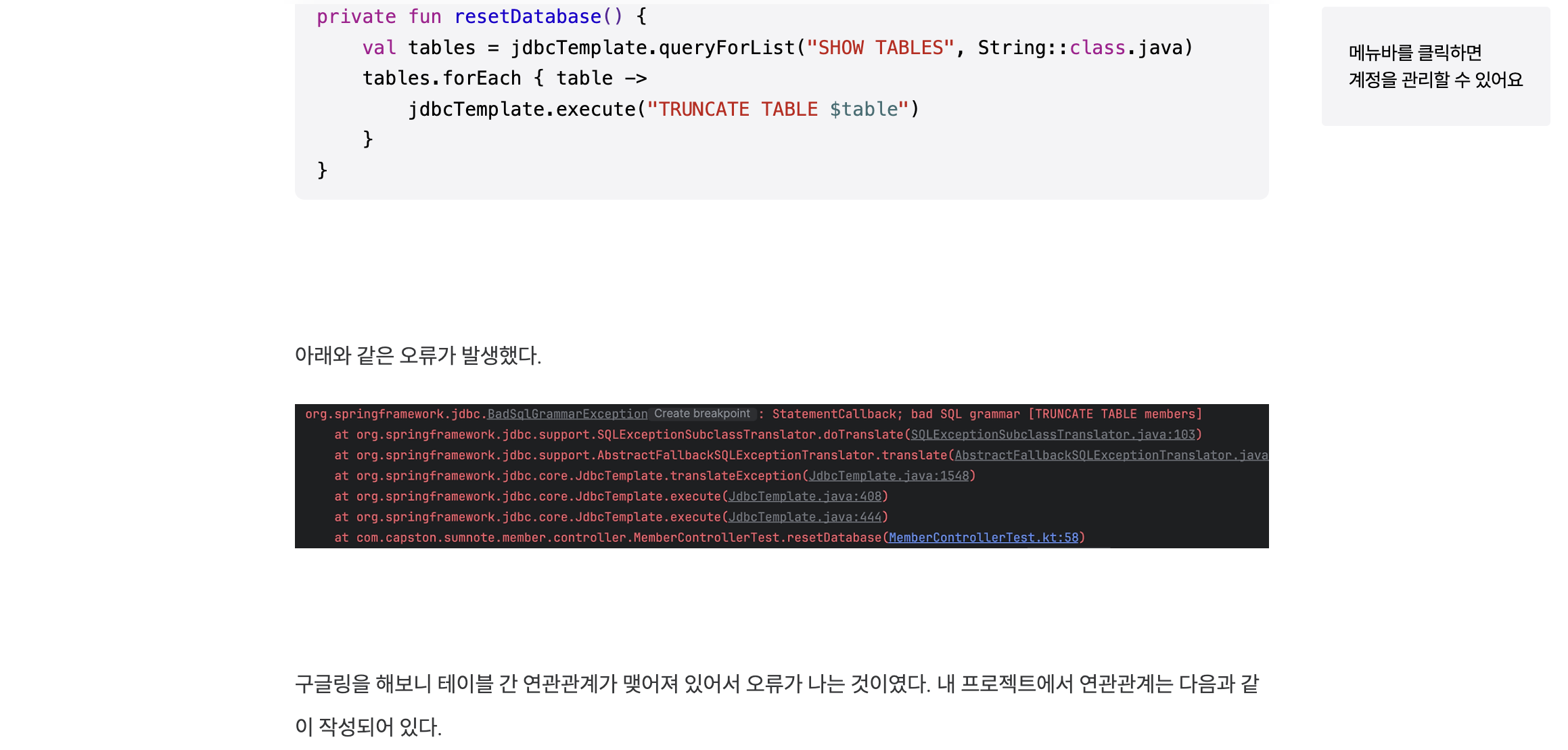 | [BadSqlGrammarException] StatementCallback; bad SQL grammar [TRUNCATE TABLE members] (0) | 2024.05.21 |