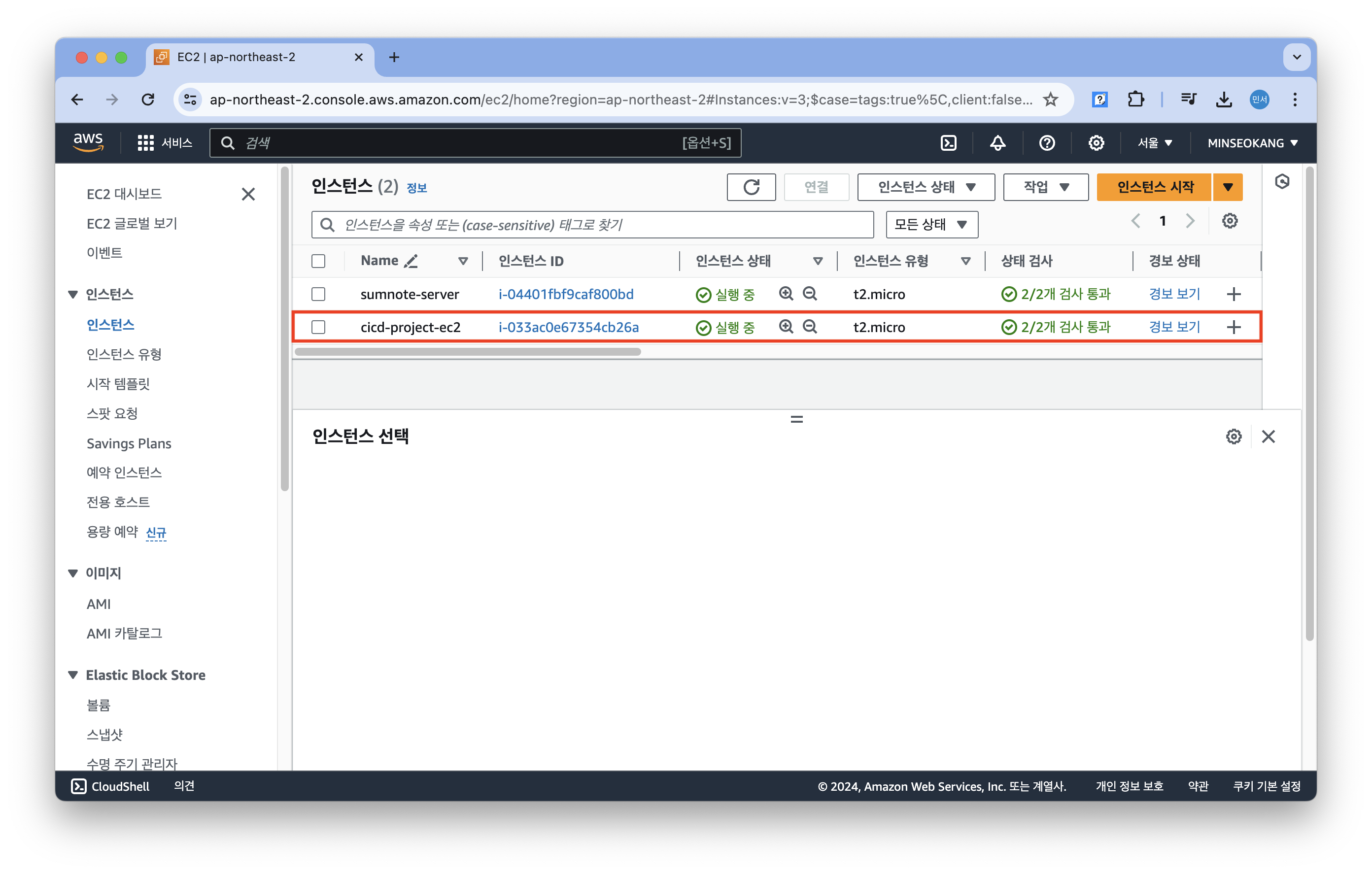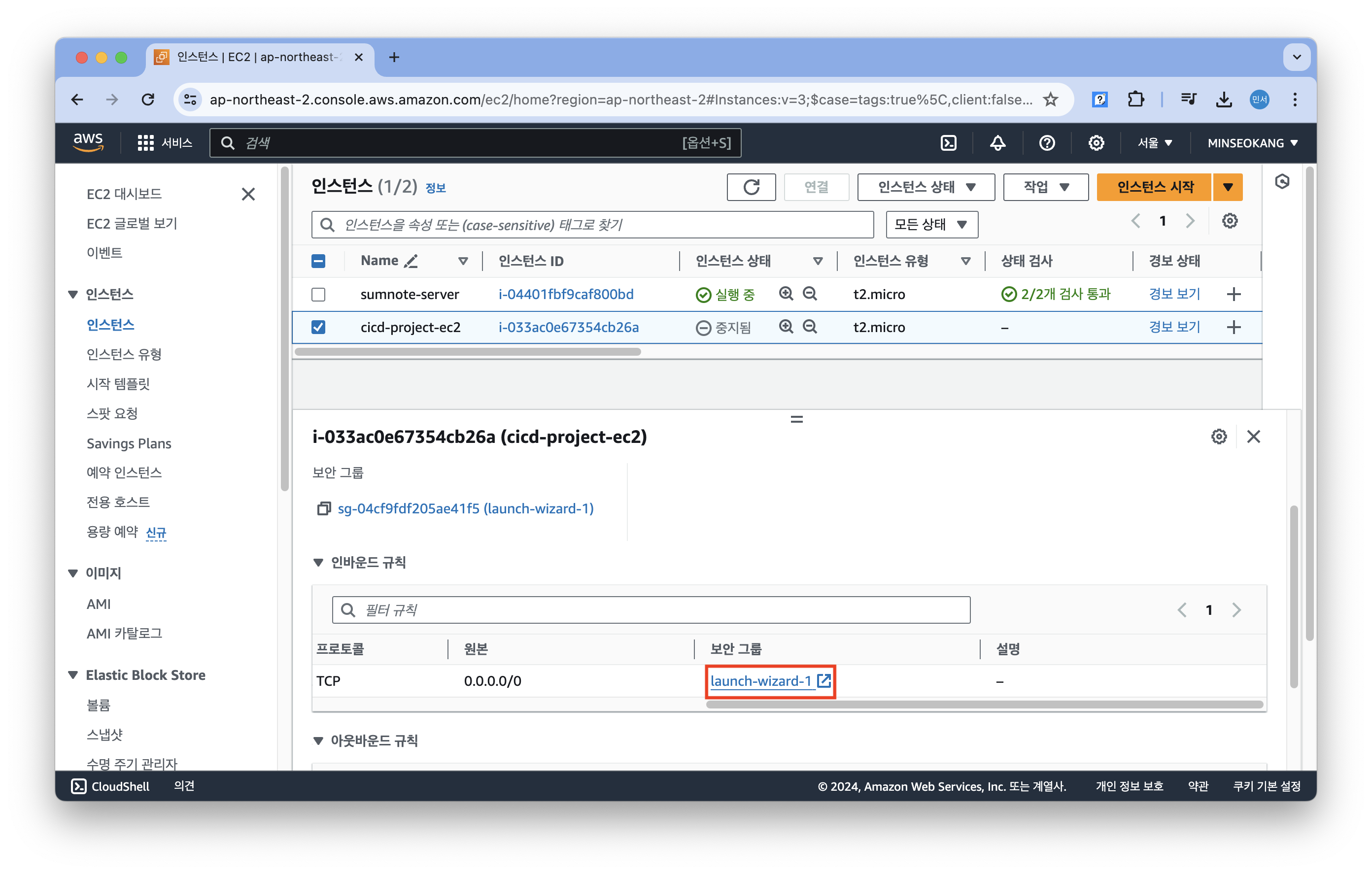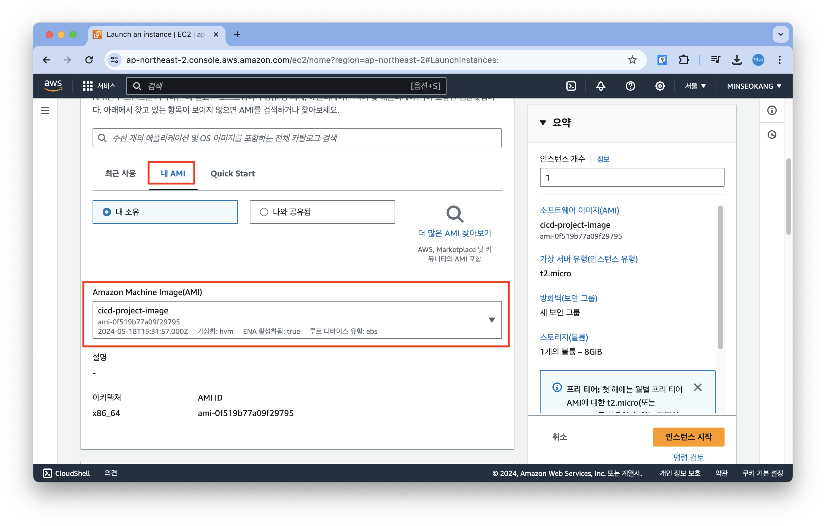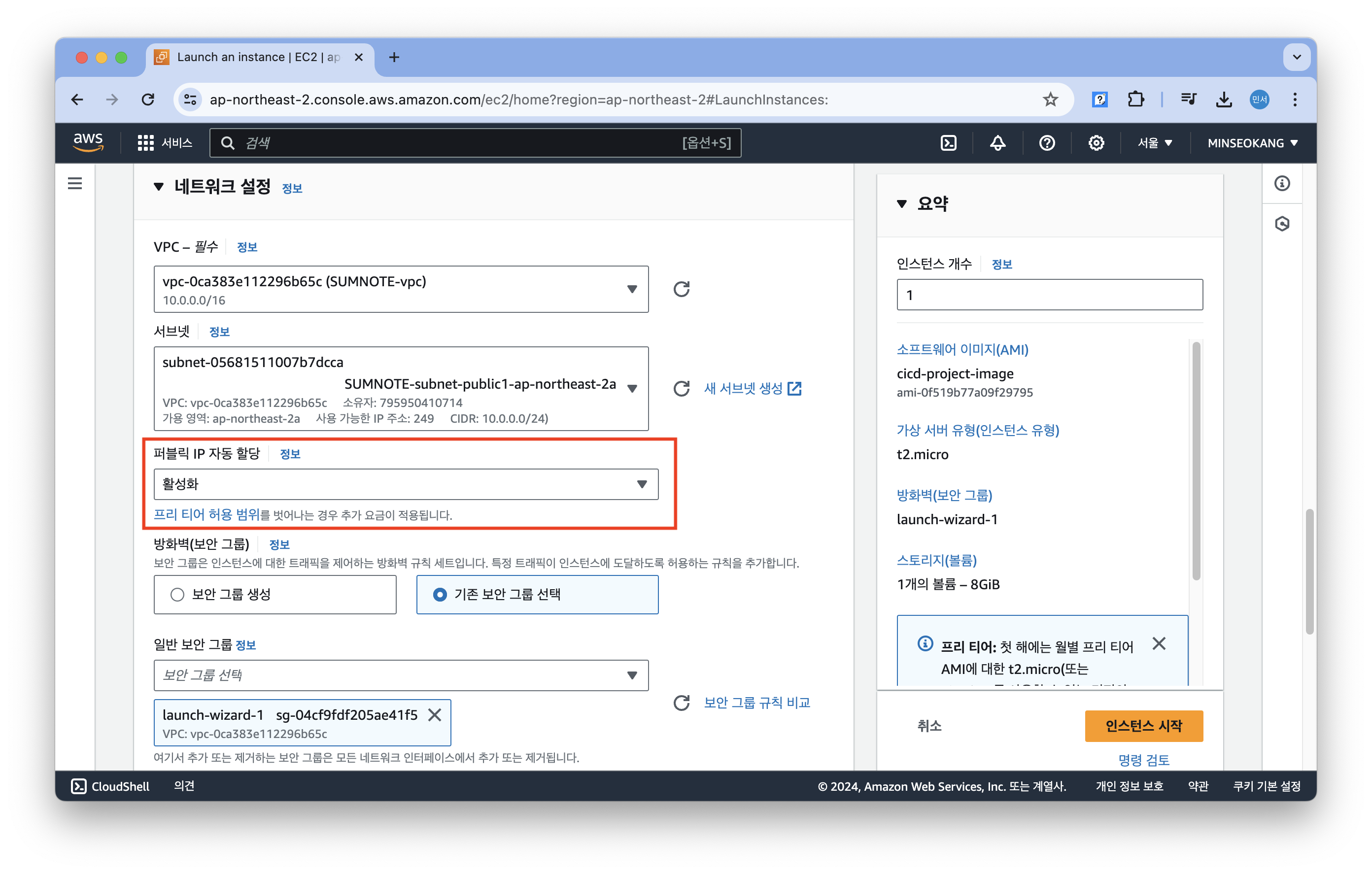 - 인스턴스 이름 : cicd-project-ec2 (추후에 변경 가능)