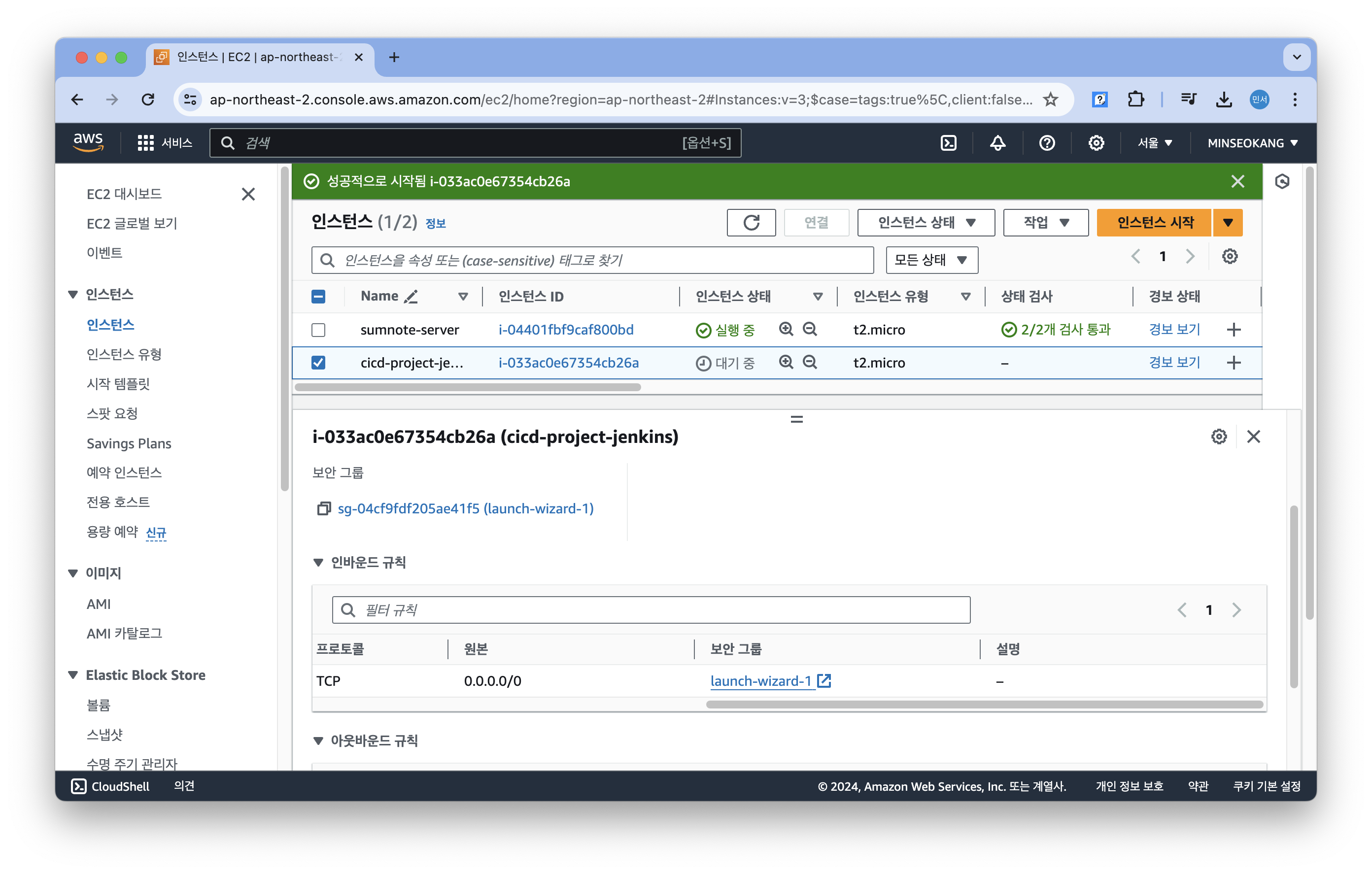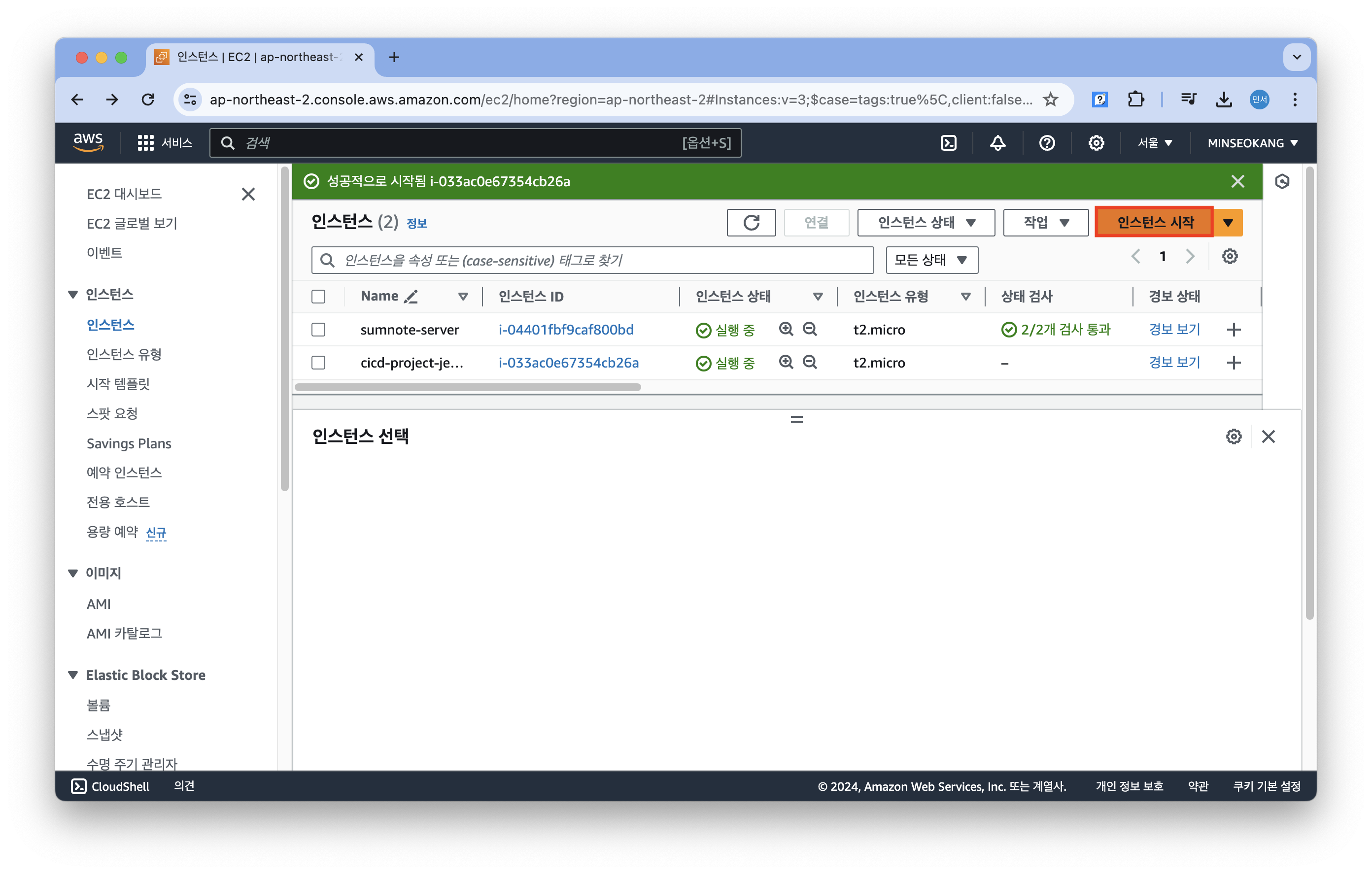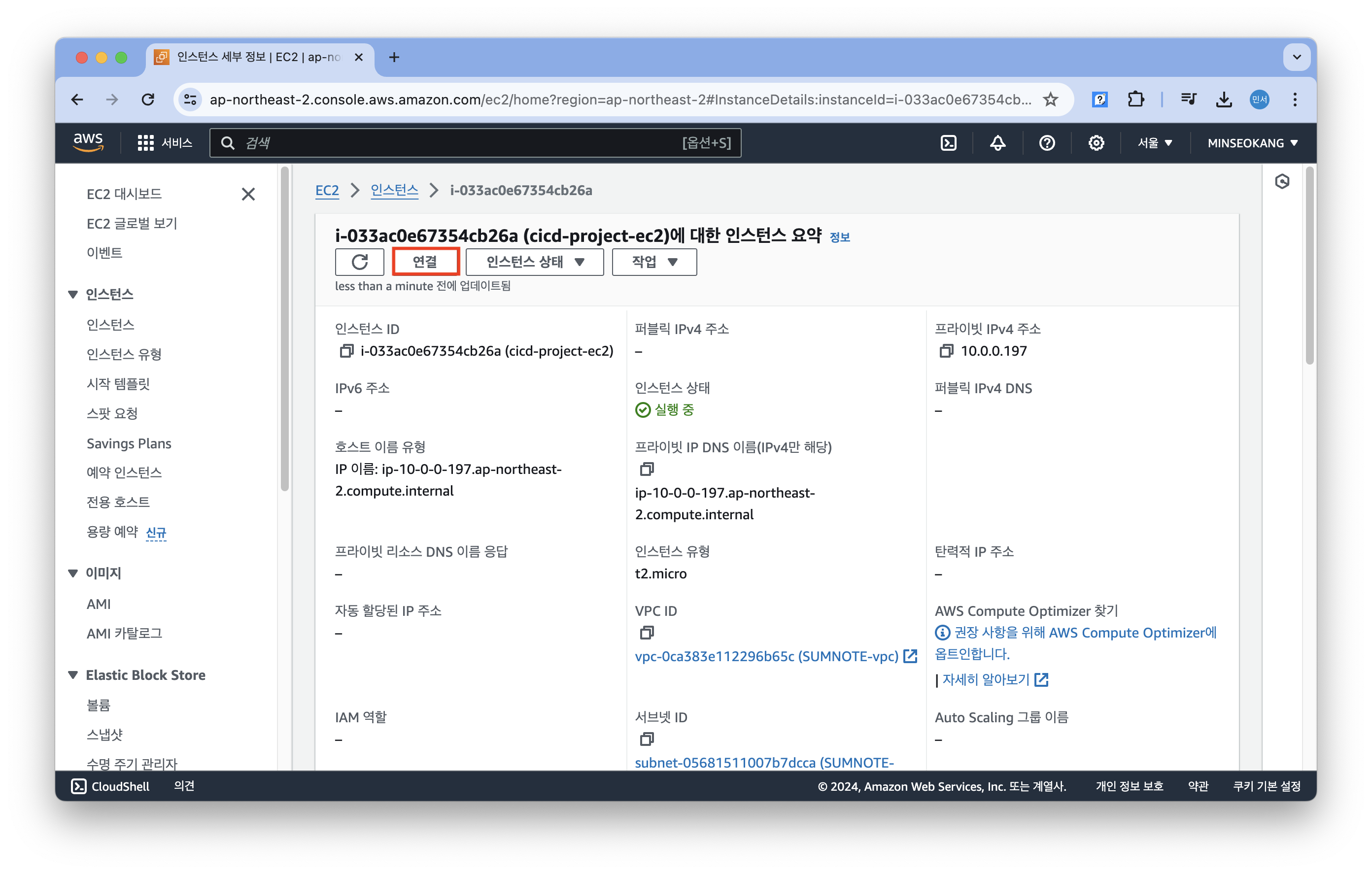 - 인스턴스 이름 : cicd-project-ec2 (추후에 변경 가능)