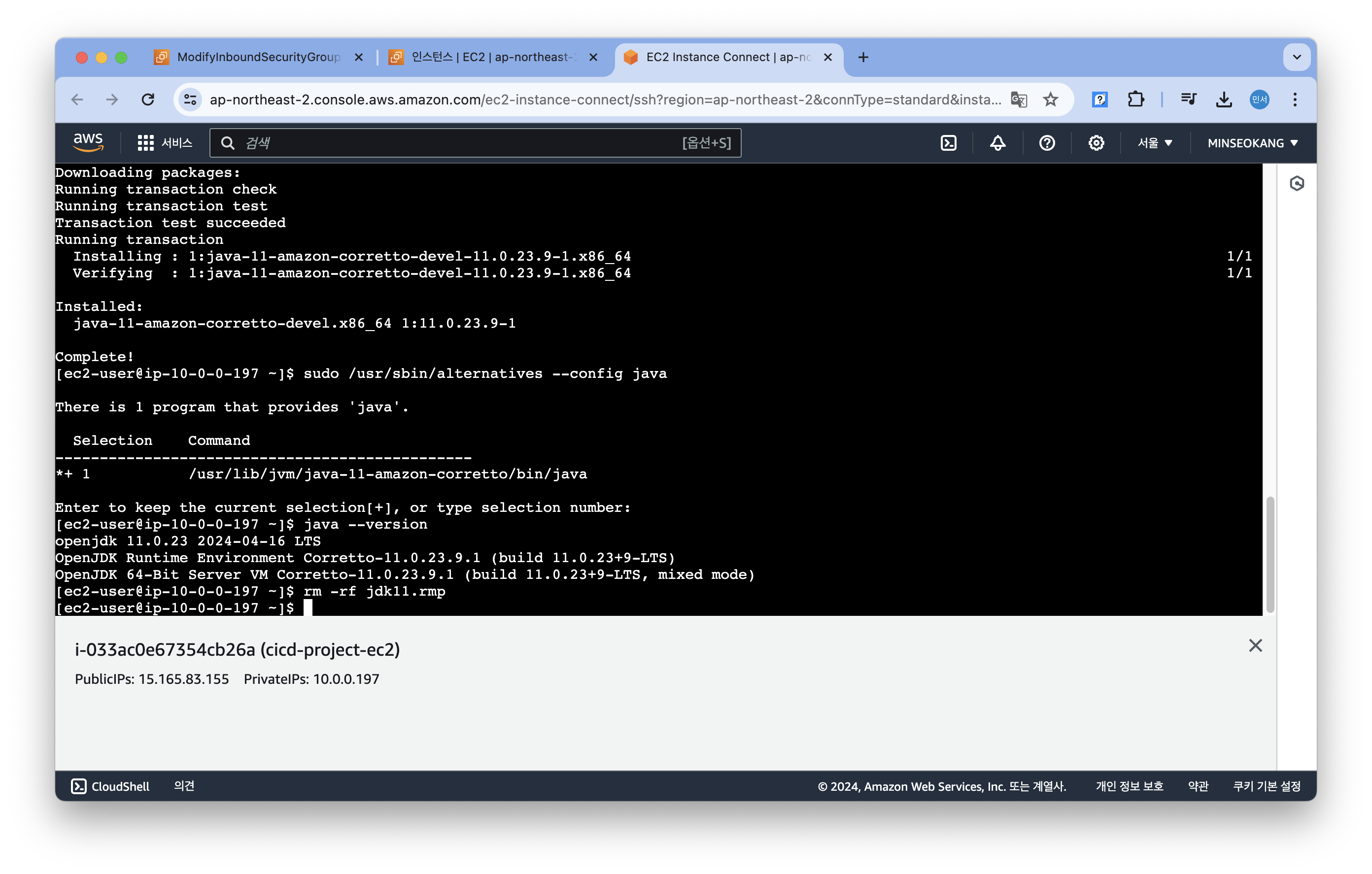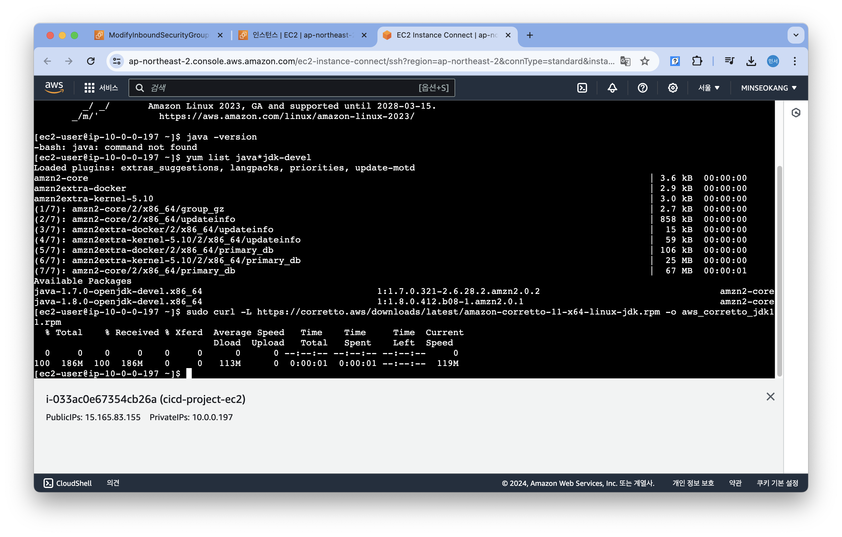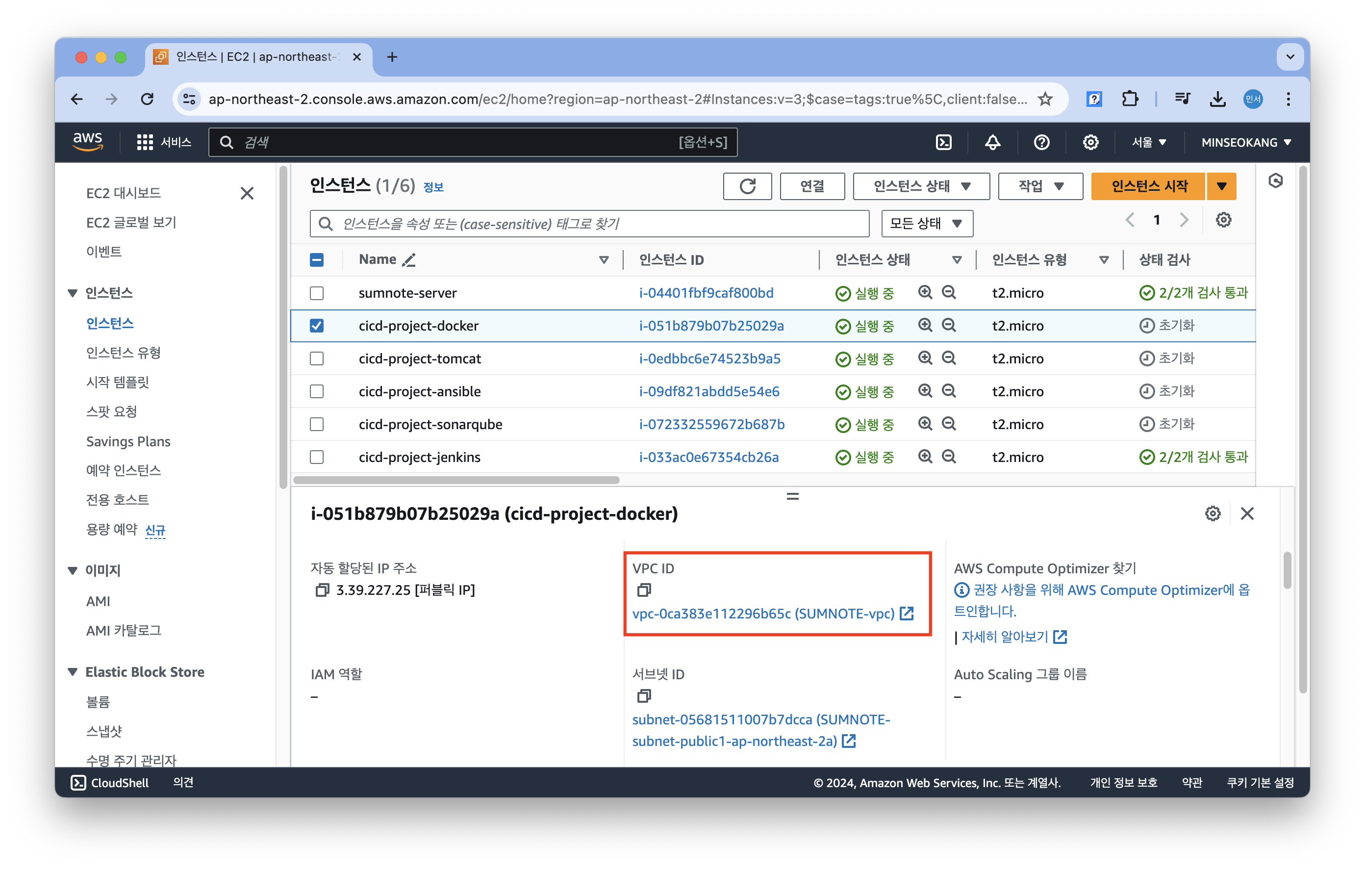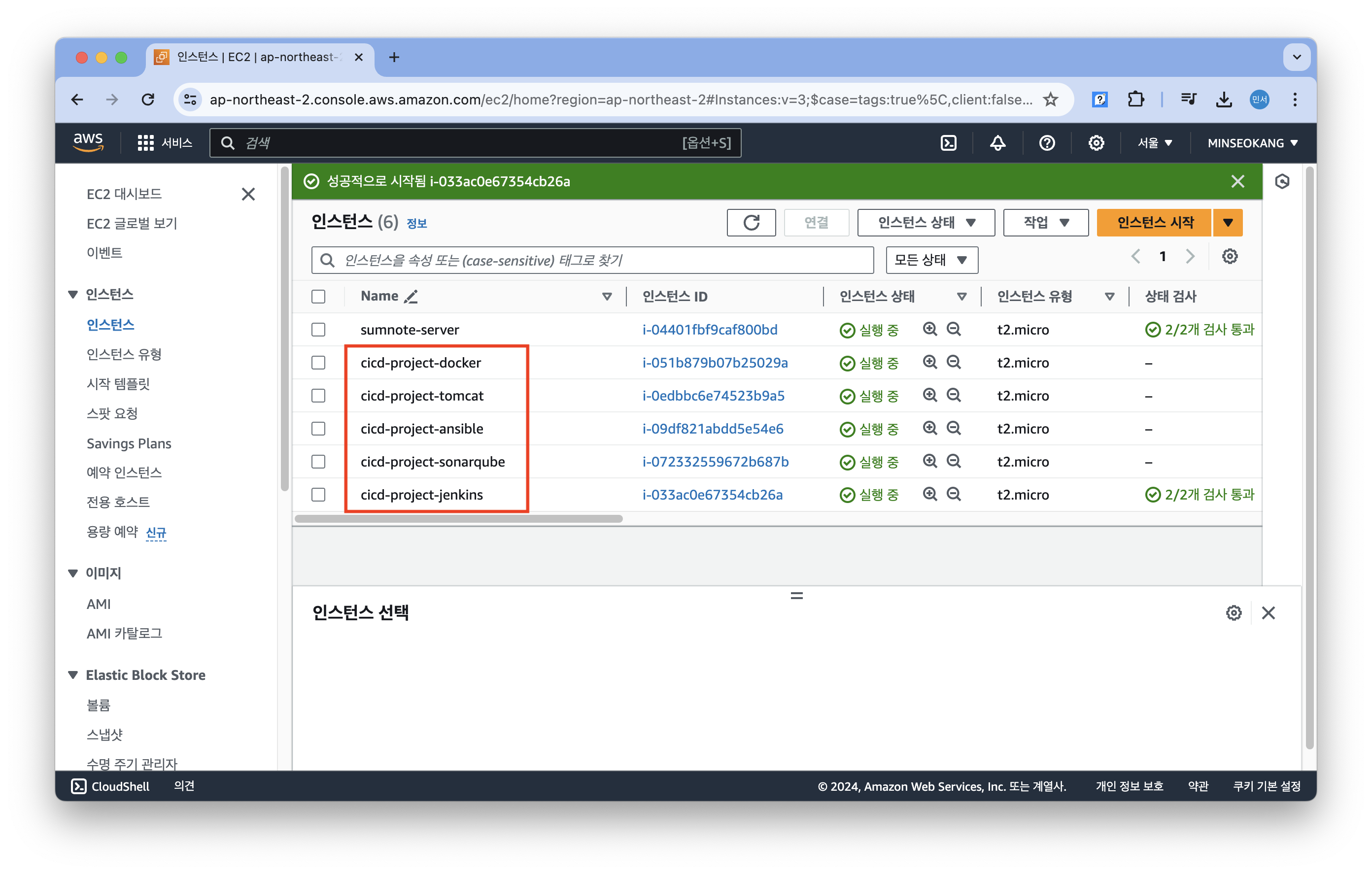 - 인스턴스 이름 : cicd-project-ec2 (추후에 변경 가능)