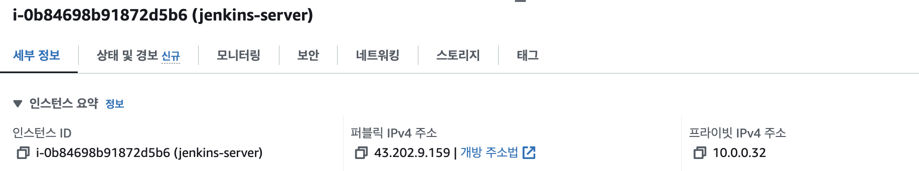 (각 EC2의 private ip 주소는 EC2 탭에서 각 인스턴스를 클릭하면 볼 수 있다. 아래는 예시 사진이다.)