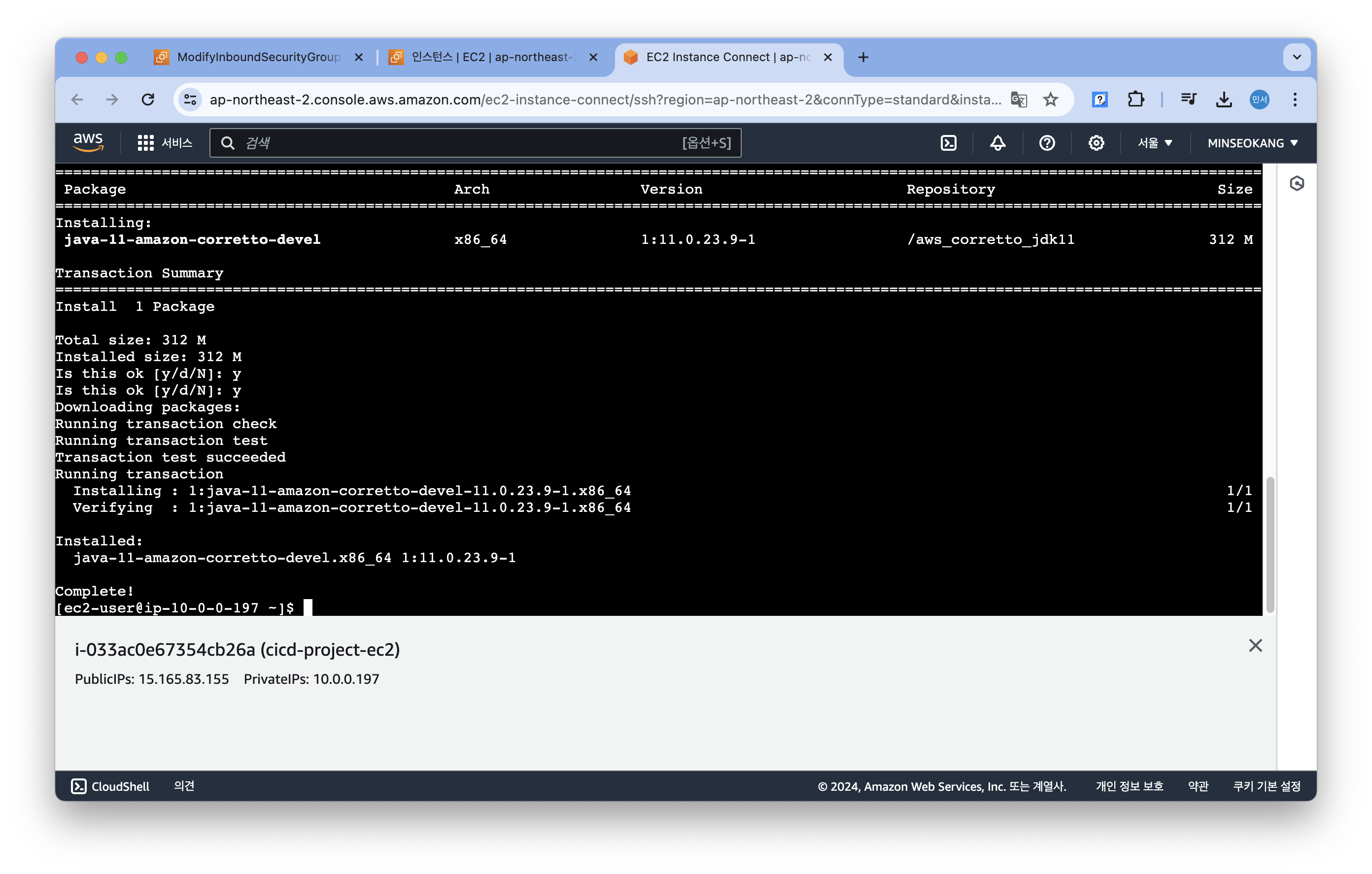 보안그룹에서 인바운드 규칙으로 cicd-project-sg를 추가해줘야 한다.