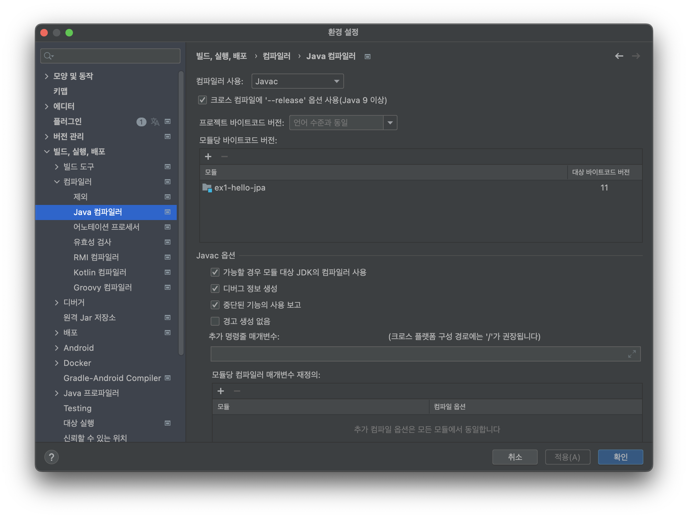 프로젝트 생성 시 추가적인 오류가 발생한다면, 자신이 사용하는 자바 버전이 모두 동일하게 설정되었는지 확인해야 한다.