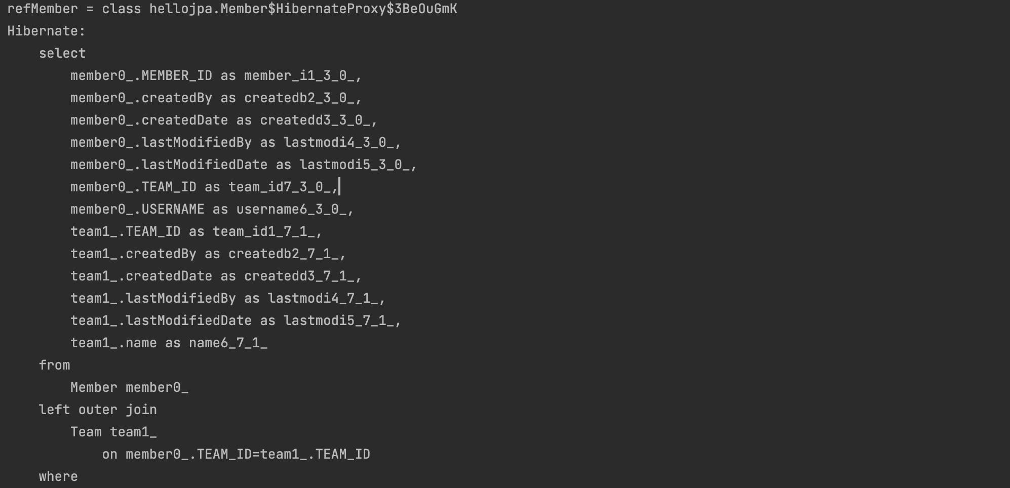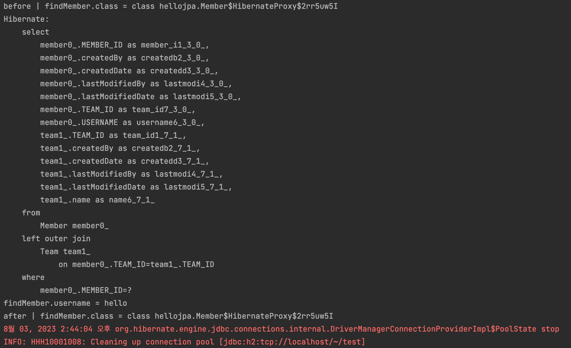 System.out.println("after | findMember.class = " + findMember.getClass());