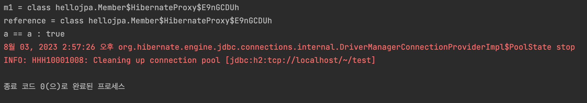 before와 after로 클래스를 찍어본 결과, 프록시가 초기화 되기 전, 후 클래스는 동일함을 볼 수 있다.