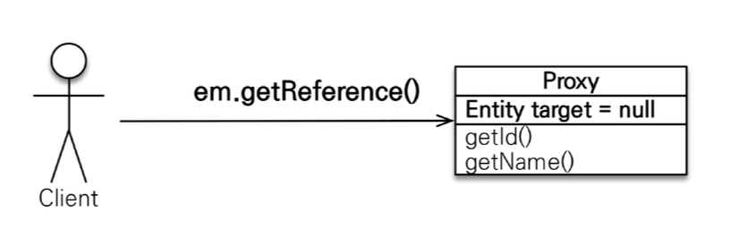 Member member = em.getReference(Member.class, “id1”);