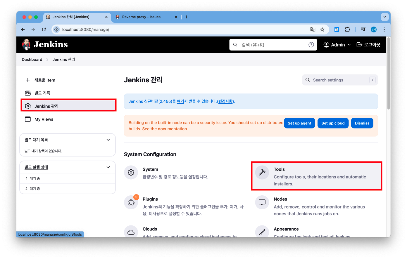 [Jenkins 관리] - [Tools] 을 클릭한다.