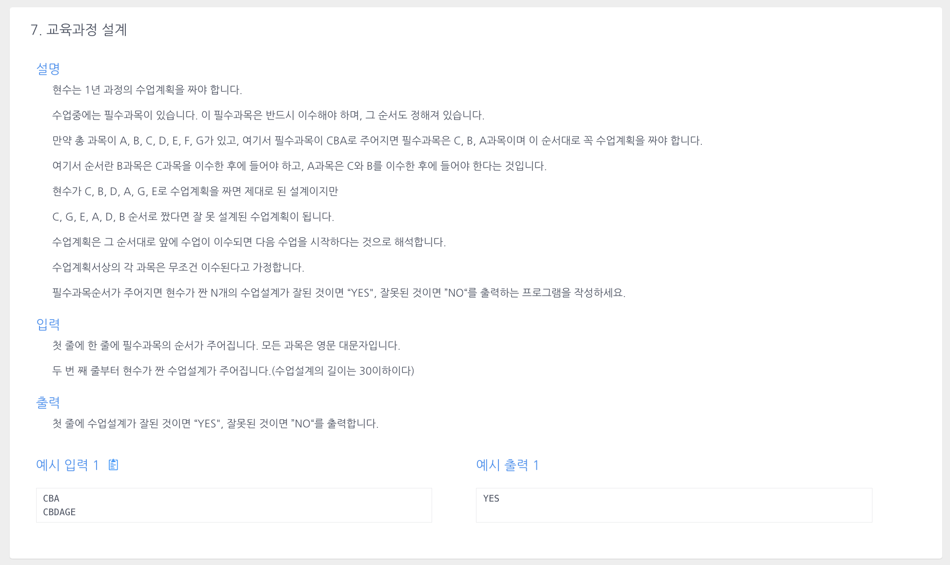 - 동일하지 않다면 교육과정을 잘못 짠 것으로, 바로 "NO"를 리턴한다.