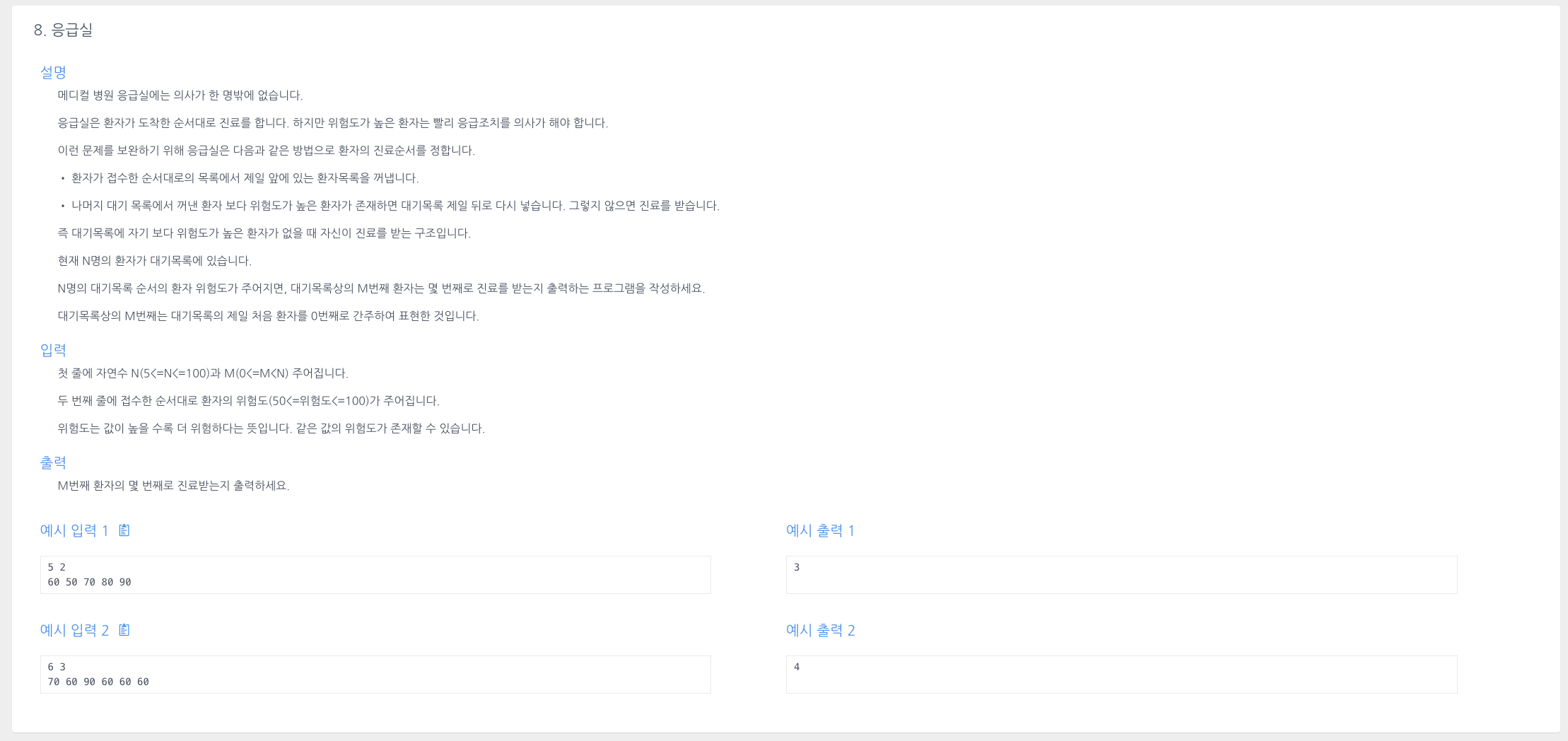 - 현재 환자의 우선순위보다 높은 우선순위를 가진 환자가 있다면