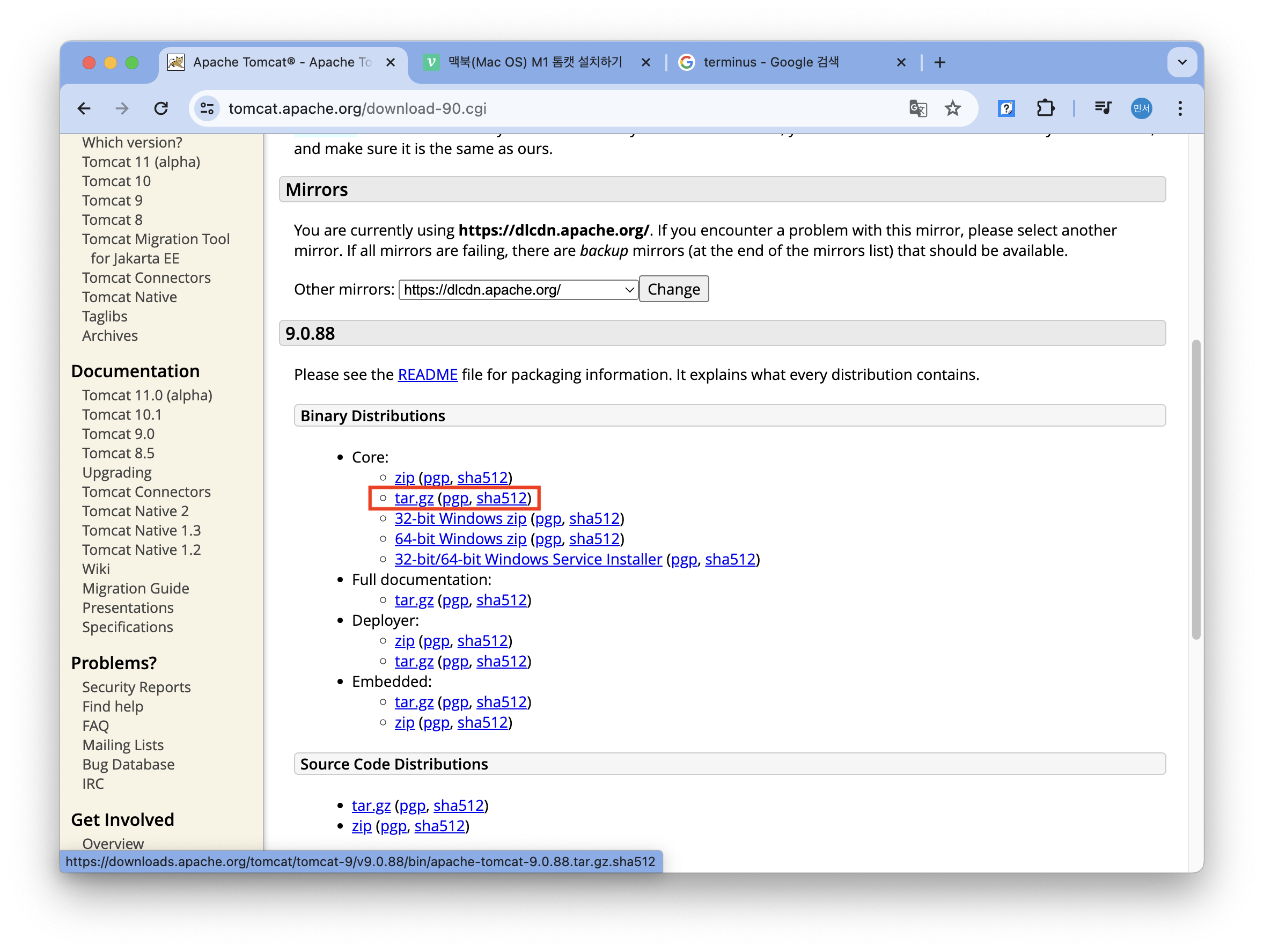 나는 맥북 M1을 사용하기 때문에 tar.gz 를 다운받았다.