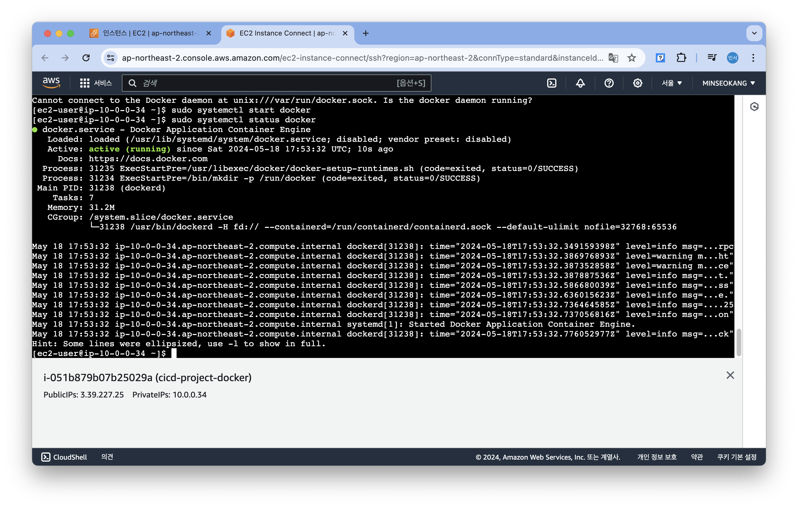 이전 글에 이어서 이번에는 cicd-project-docker EC2에 docker 를 설치해보자.