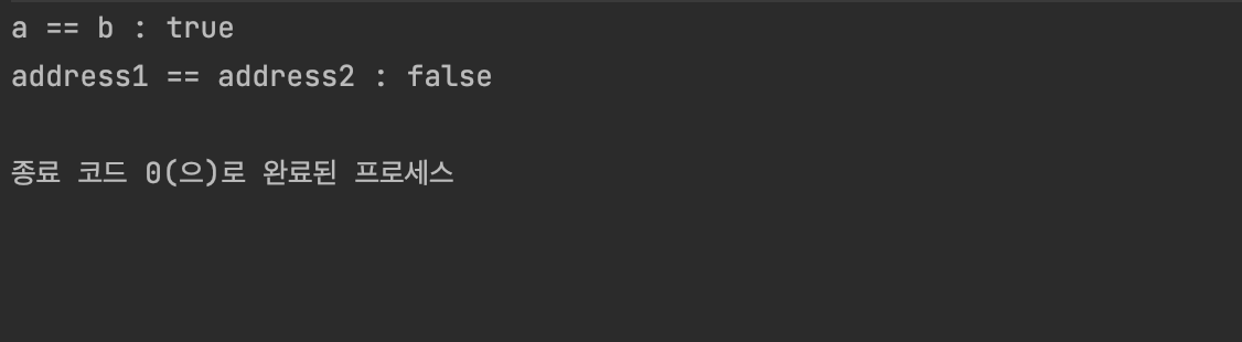 System.out.println("address1 == address2 : " + (address1 == address2));